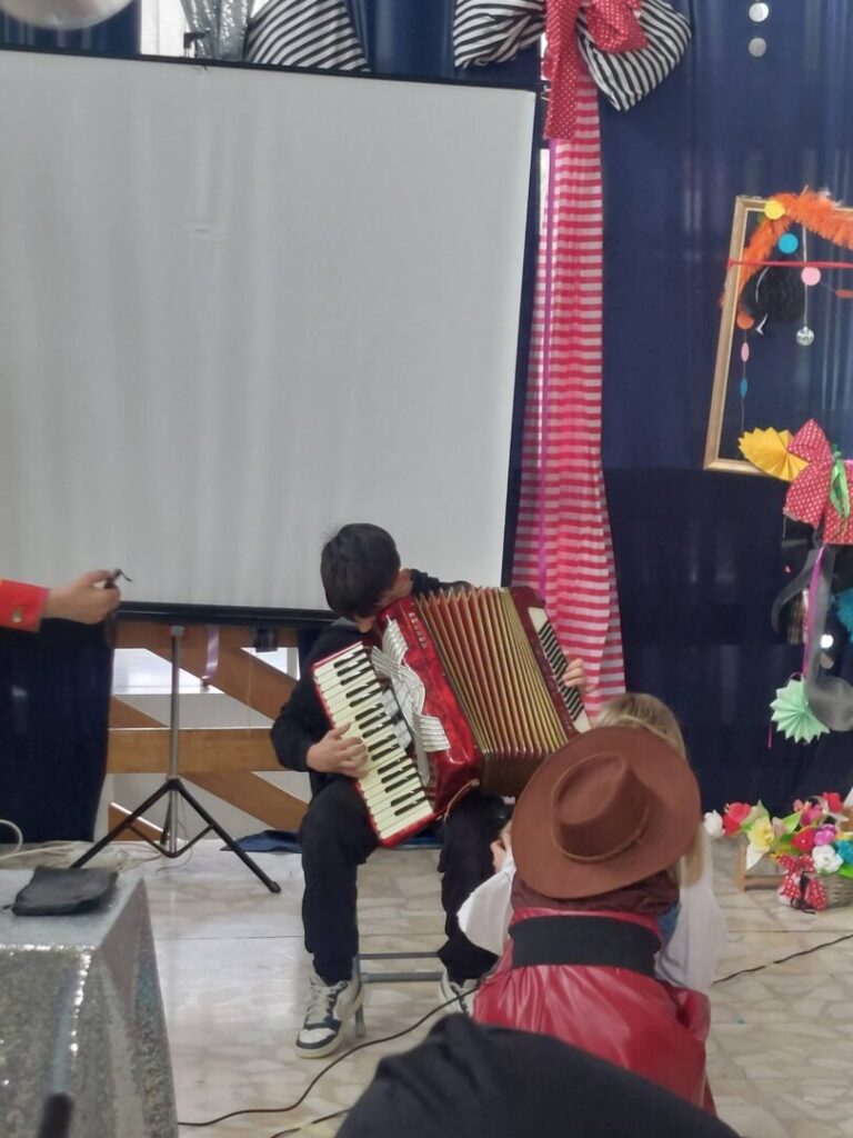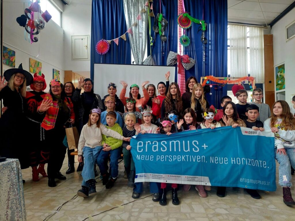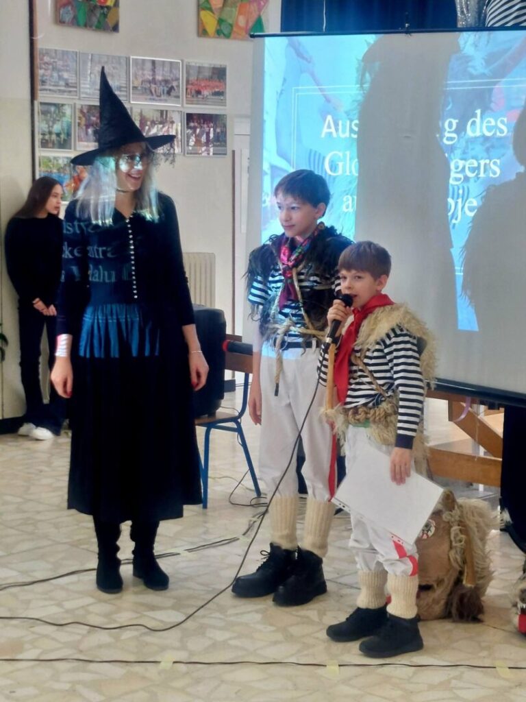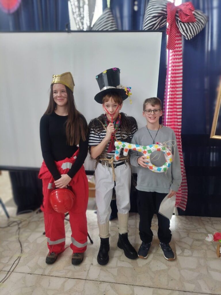 Treći dan Erasmus + projekta bio je ispunjen različitim aktivnostima kojima smo naše goste upoznali s tradicijom maskiranja, pusta i običajima. Kahoot kvizom o poznavanju pusnih običaja našeg zavičaja, predstavnici svakog razreda takmičili su se za naslov meštra i kraljice karnevala. Ravnateljica je predala ključ škole meštru Paulu Bratuši, a krunu Tari Neralić. Nakon toga održana je modna revija kostima, učenicima se oslikavalo lica, a sve je završilo plesom i sportskim igrama u dvorani. U poslijepodnevnim satima gosti su posjetili Kuću halubajskega zvončara.