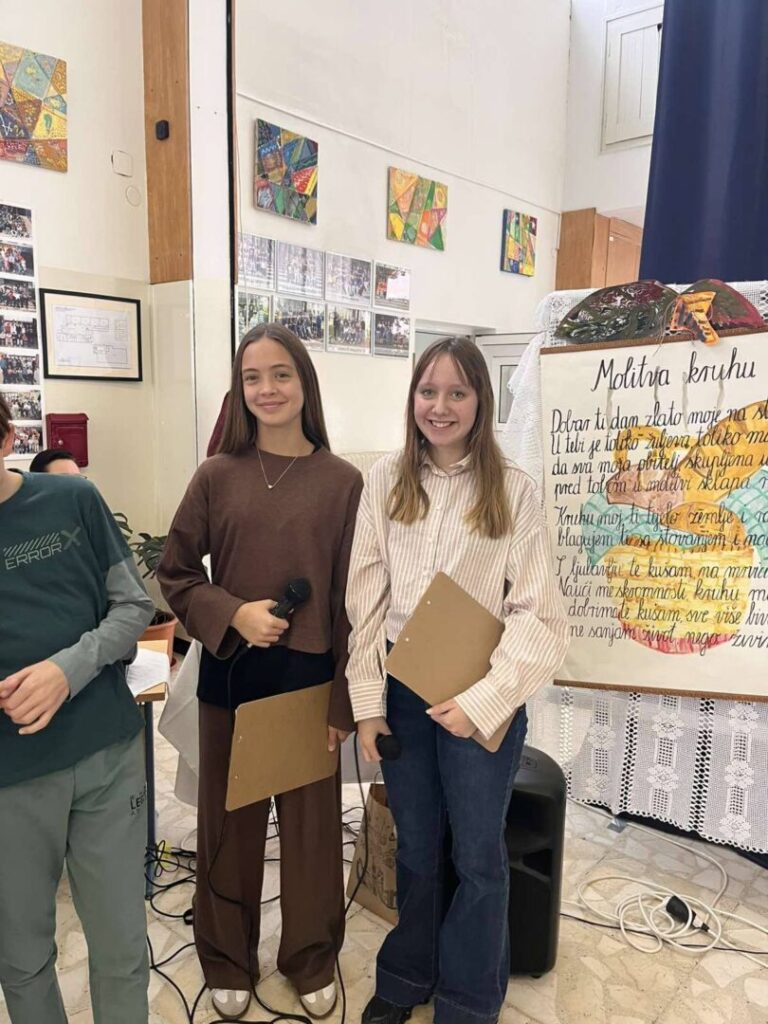 Raskošni plodovi jeseni ovih su dana ures naše škole. Šire se mirisi, a posebno je zamirisao kruh. Vrijedne ruke naših učenika dale su svoj doprinos kako bismo na poseban način obilježili Dane kruha i zahvalnosti za plodove zemlje. Uz pjesmu i scenski prikaz naziva “Zrno, klas, kruh”, manifestaciju je svojim dolaskom obogatio nadbiskupov izaslanik i pastoralni vikar Riječke nadbiskupije, vlč. Mario Gerić te naš redoviti gost, župnik Kristian Malnar.