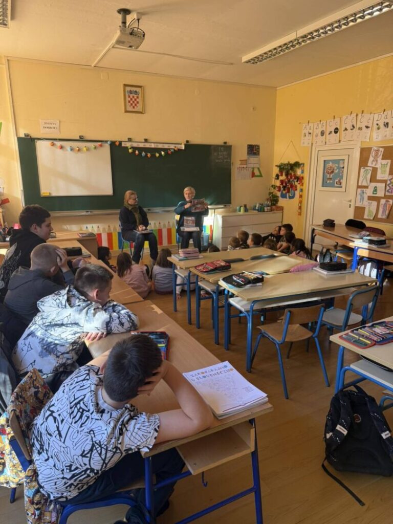 Na nastavi slovenskoga jezika imali smo dvije drage i zanimljive gošće, spisateljicu Helenu Janežič i ilustratoricu Polonu Kosec, koje su predstavile svoju slikovnicu Čukec Nukec, pisanu na slovenskom i hrvatskom jeziku. Bilo nam je zanimljivo, poučno i zabavno.