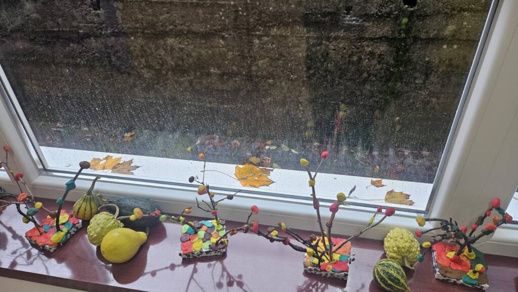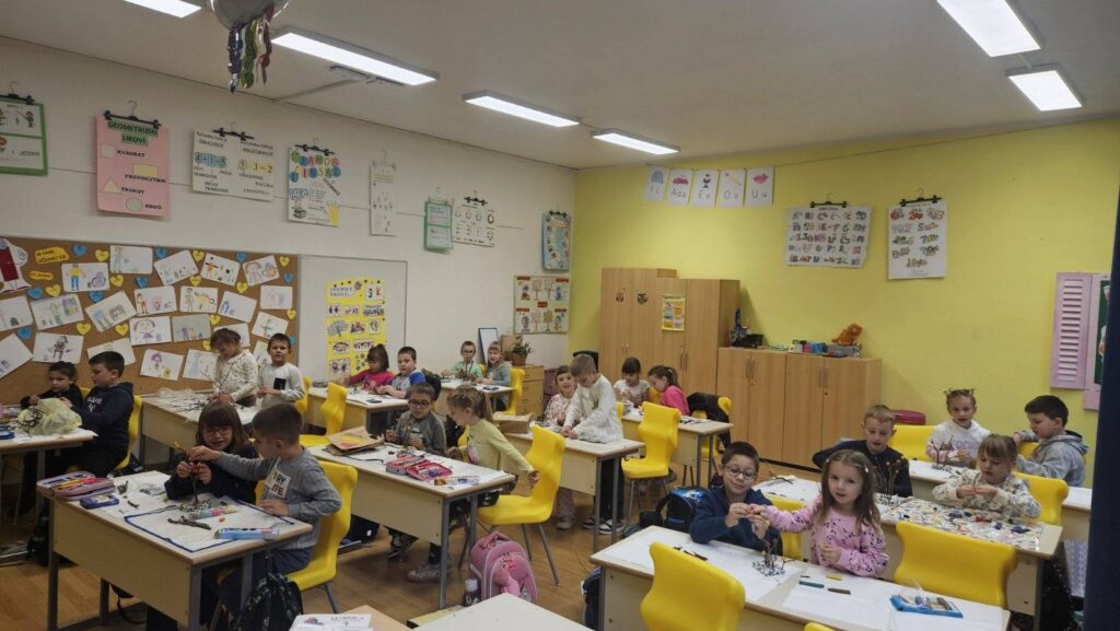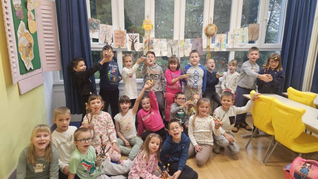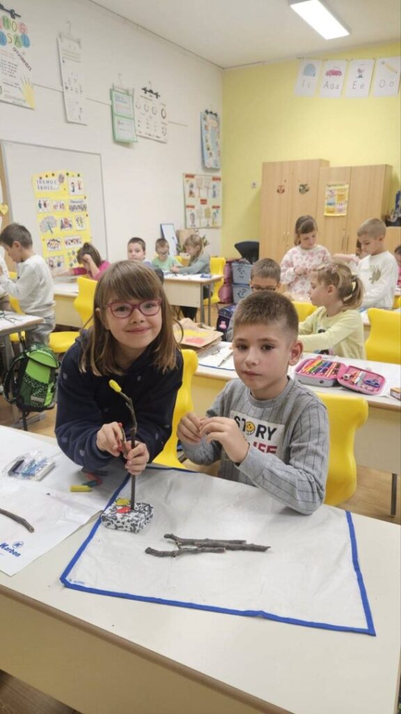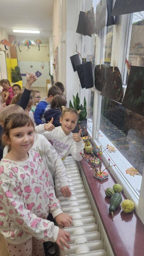 Vrijedne ruke prvašića- na satu likovne kulture prikazali su jesenski ugođaj u razredu, a iz prirode i društva usvojili znanje o tom godišnjem dobu.