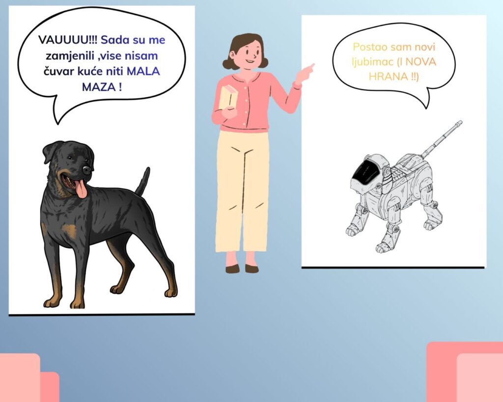 Učenici su u sklopu izvannastavne aktivnosti iz informatike izradili svojstveni digitalni strip, koristeći se Canva programom, na temu “Napredak tehnologije”. Učenicima je data kreativna sloboda te su se mogli dotaknuti pozitivnog ali i negativnog konteksta u pogledu napredka tehnologije.