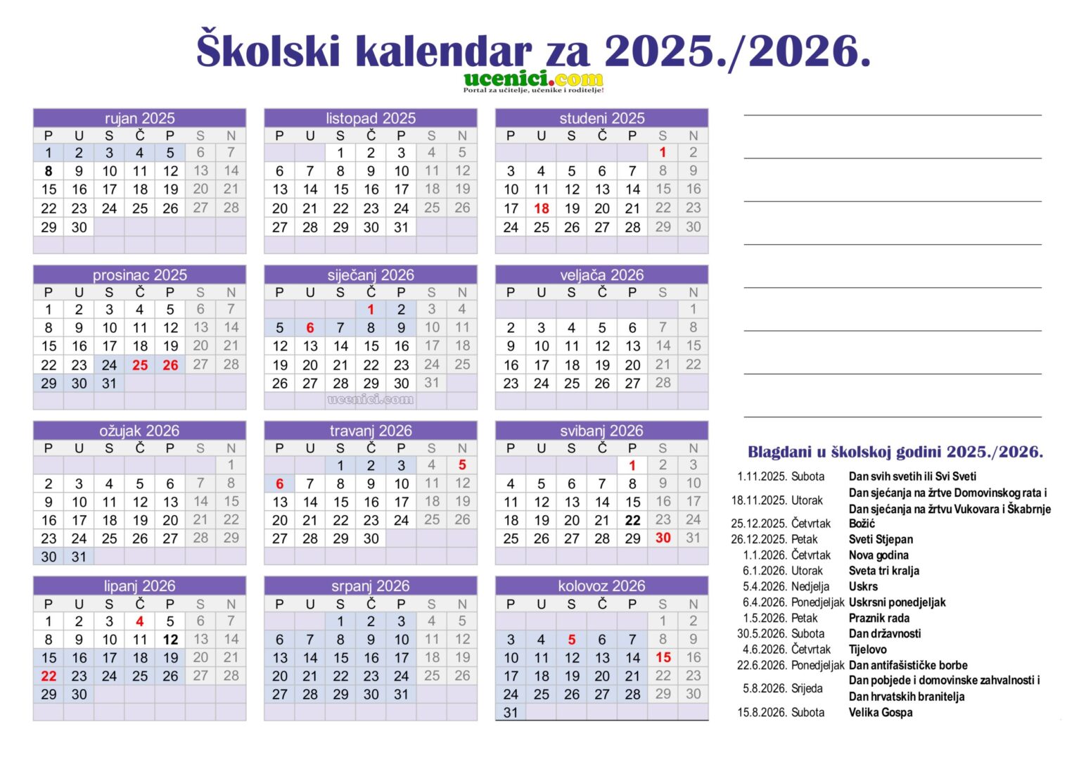 Napomena: Detaljan vizualni prikaz kalendara s označenim radnim i neradnim danima možete pogledati u galeriji/prilogu ispod teksta.